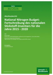 National Nitrogen Budget: Fortschreibung des nationalen Stickstoff-Inventars für die Jahre 2015 - 2020