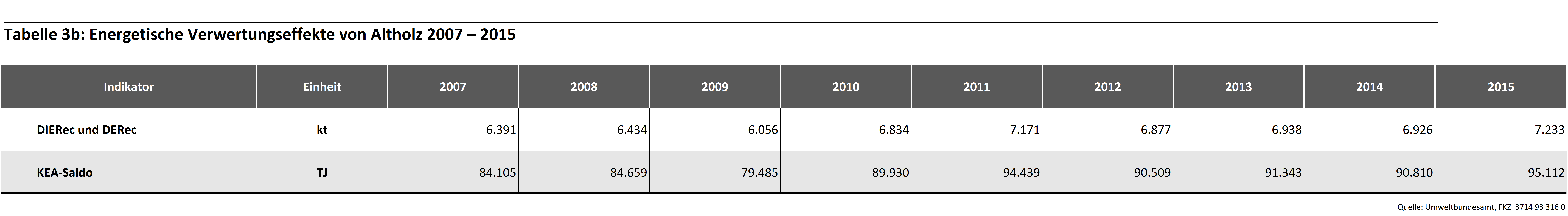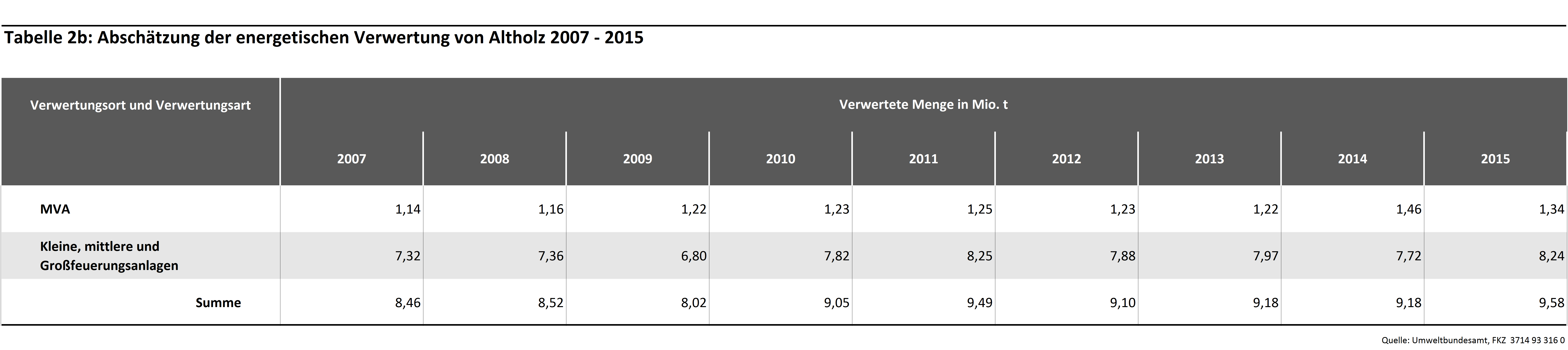 Tabelle 2b: Abschätzung der energetischen Verwertung von Altholz 2007 - 2015 Quelle: Umweltbundesamtaltholz_tabellen.xlsx