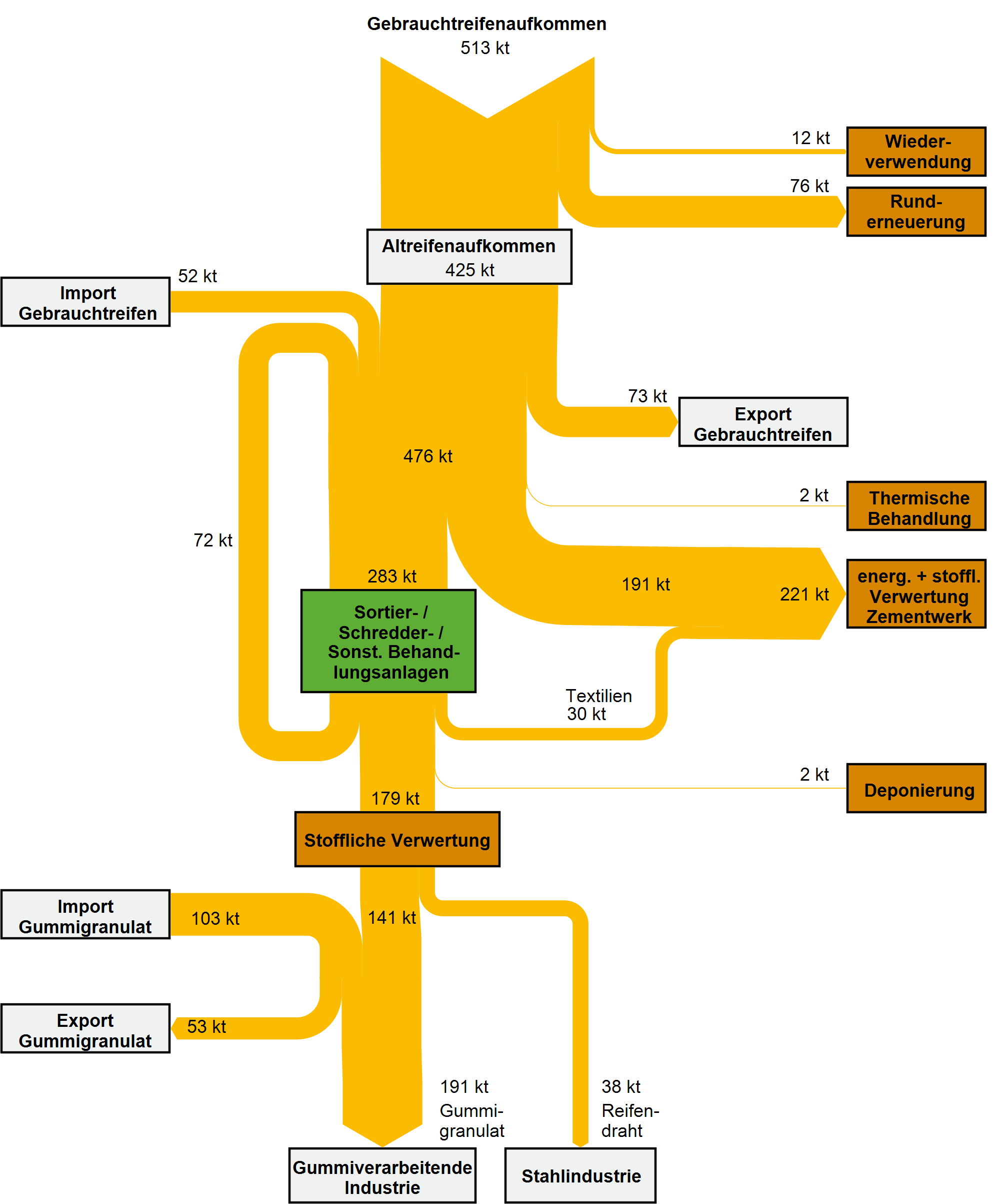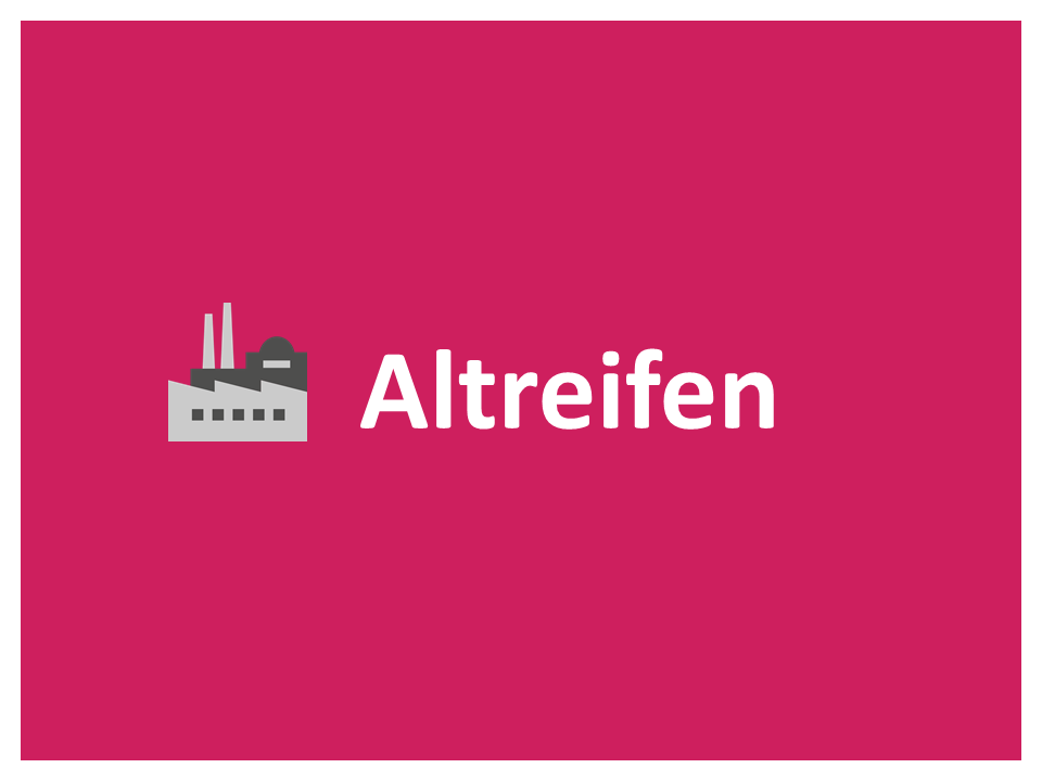 Altreifen bzw. die hierin enthaltenen Materialien werden sowohl rohstofflich, werkstofflich als auch energetisch verwertet.
