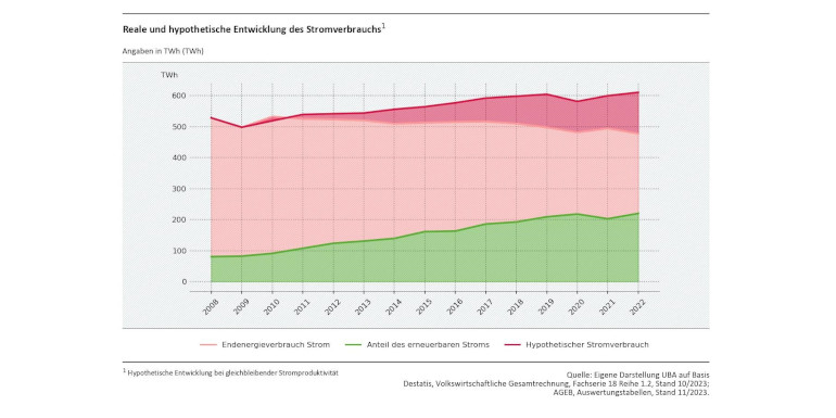 Abb. 8: Reale und hypothetische Entwicklung des Stromverbrauchs