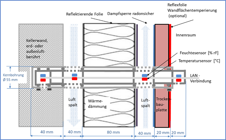 Abbildung 1: Aufbau der Messstelle in der Test-Vorwand des Pilotprojekts
