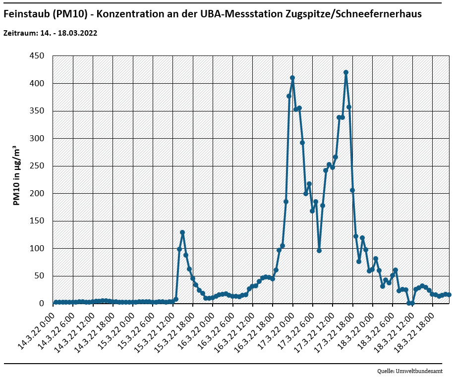 Abbildung 1: Feinstaub (PM10) - Konzentration an der UBA-Messstation Zugspitze/Schneefernerhaus
