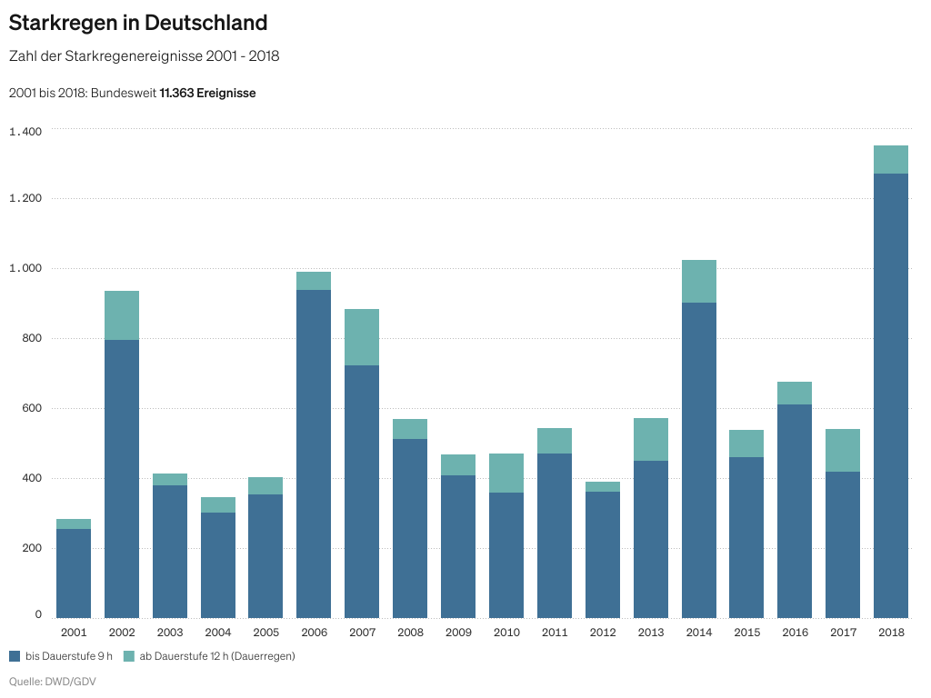 Abbildung 1: Zahl der Starkregenereignisse 2001 -2018