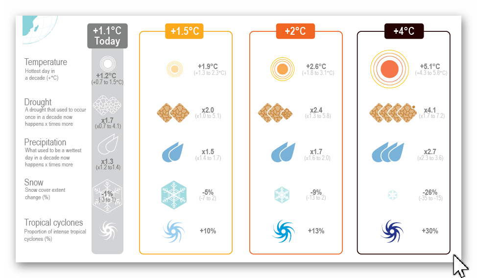 Dürrerisiko in Abhängigkeit des globalen Temperaturanstieges Quelle: IPCC 2022 - Climate Change 2022 - Impacts Adaptation and Vulnerability