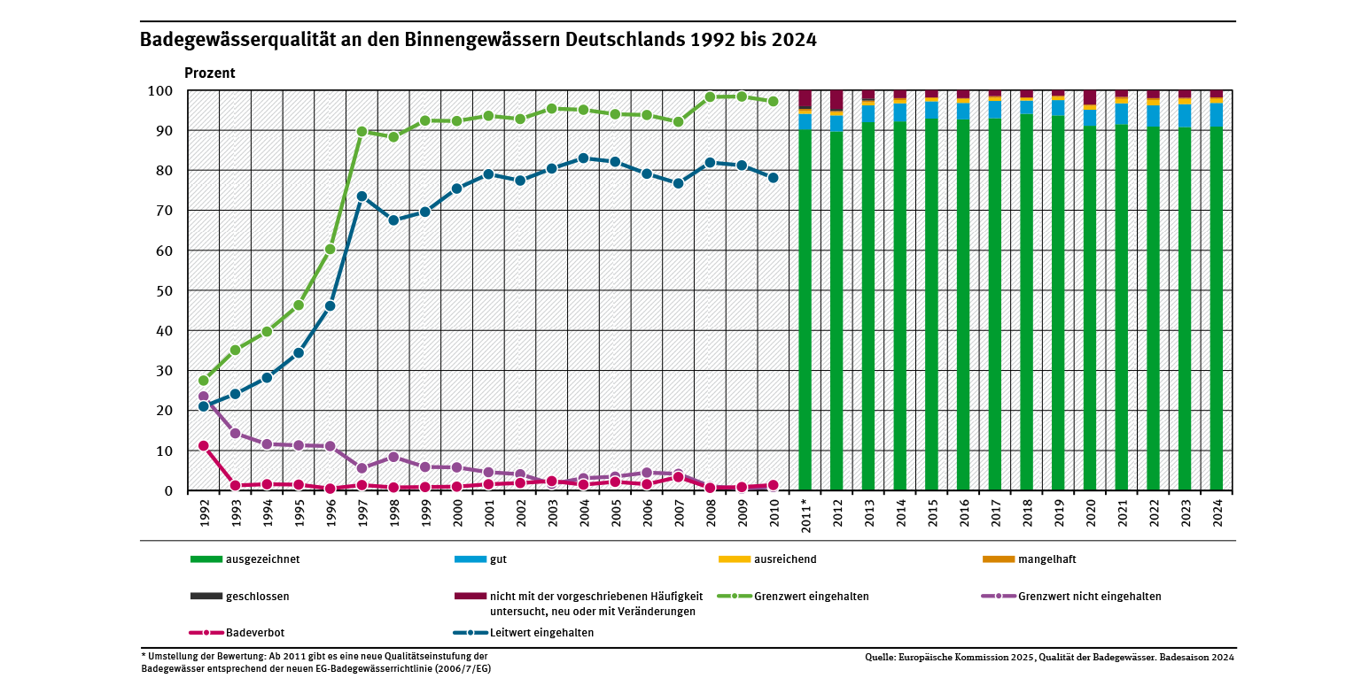 Badegewässerqualität an den Binnengewässern Deutschlands