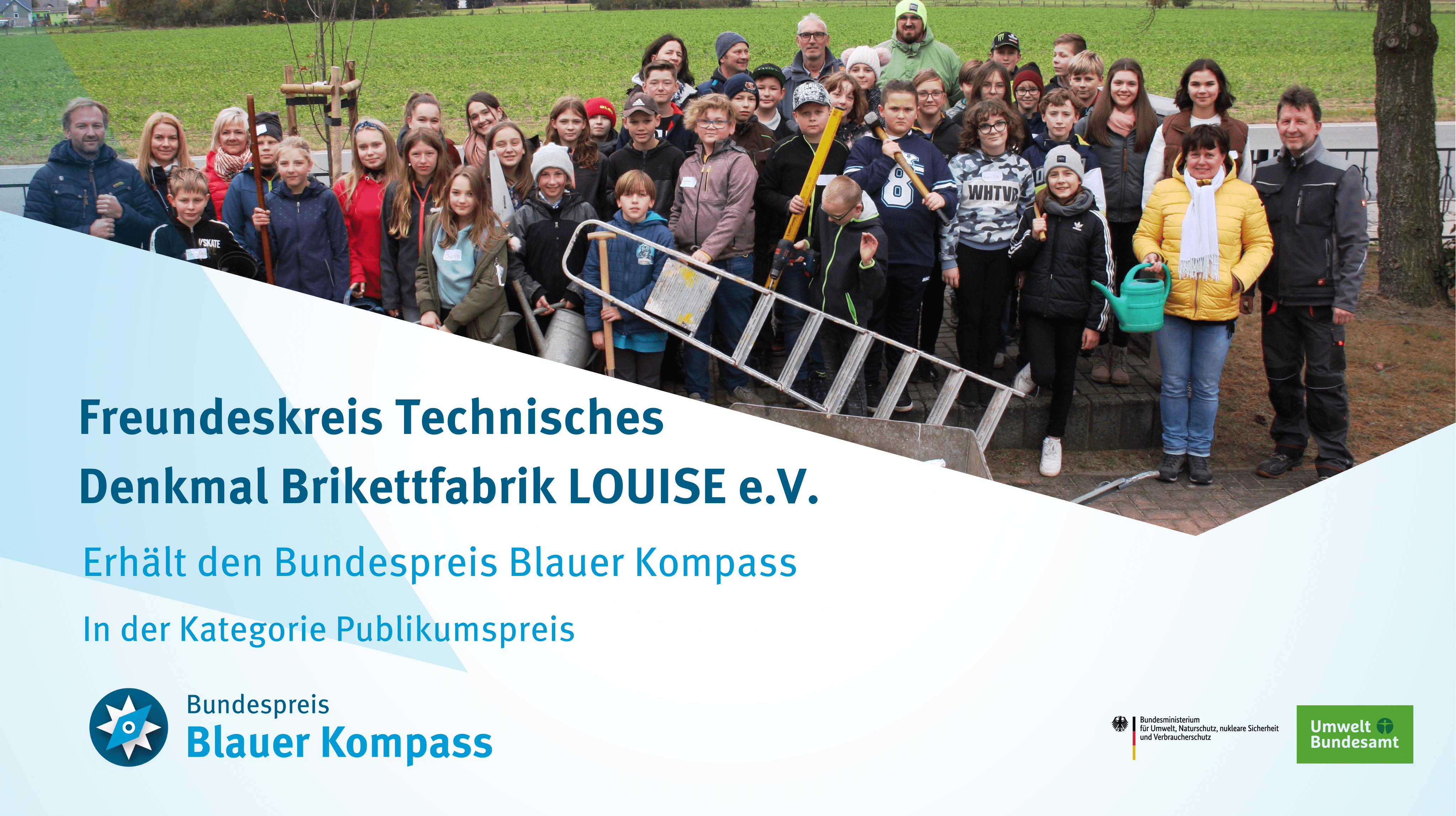 Der Freundeskreis Technisches Denkmal Brikettfabrik LOUISE e.V. ist Preisträgerprojekt 2022 für den Bundespreis Blauer Kompass. Quelle: Leuchtturm LOUISE