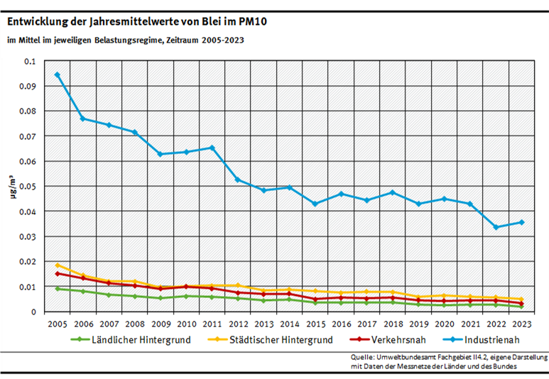 Blei im PM10 - Jahresmittelwerte 2010 bis 2023