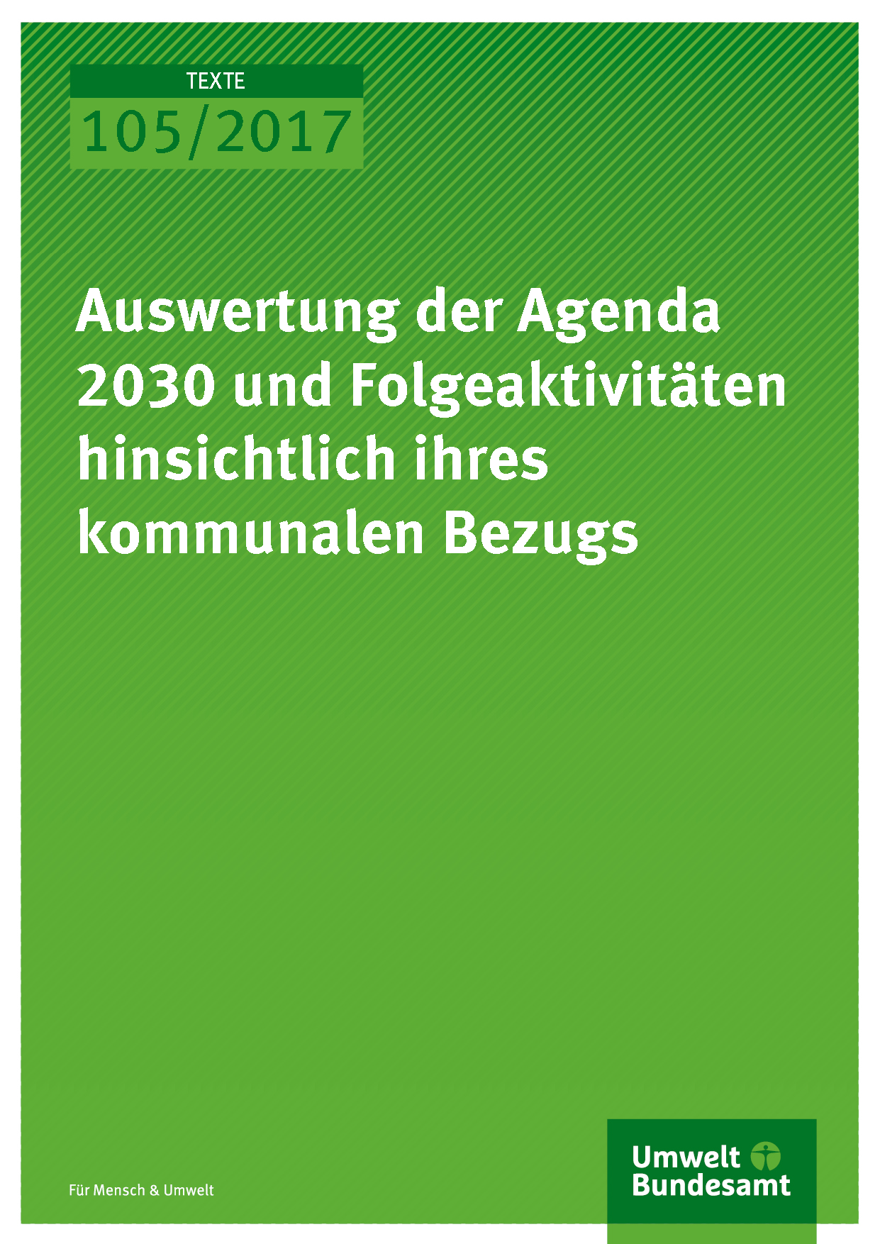 Cover der Publikation Texte 105/2017 Auswertung der Agenda 2030 und Folgeaktivitäten hinsichtlich ihres kommunalen Bezugs
