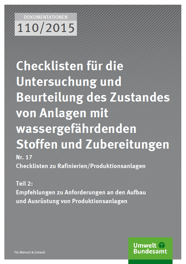 Checklisten für die Untersuchung und Beurteilung des Zustandes von Anlagen mit wassergefährdenden Stoffen und Zubereitungen