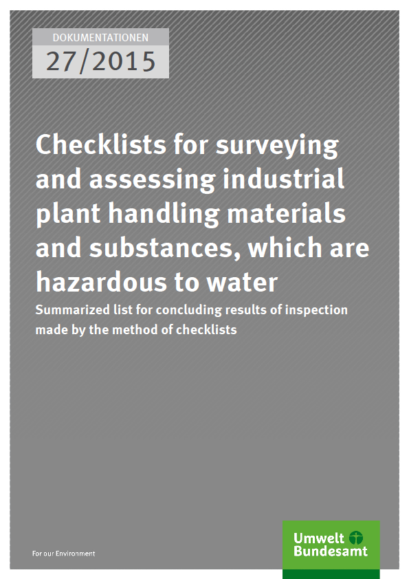 Checklists for surveying and assessing industrial plant handling materials and substances, which are hazardous to water