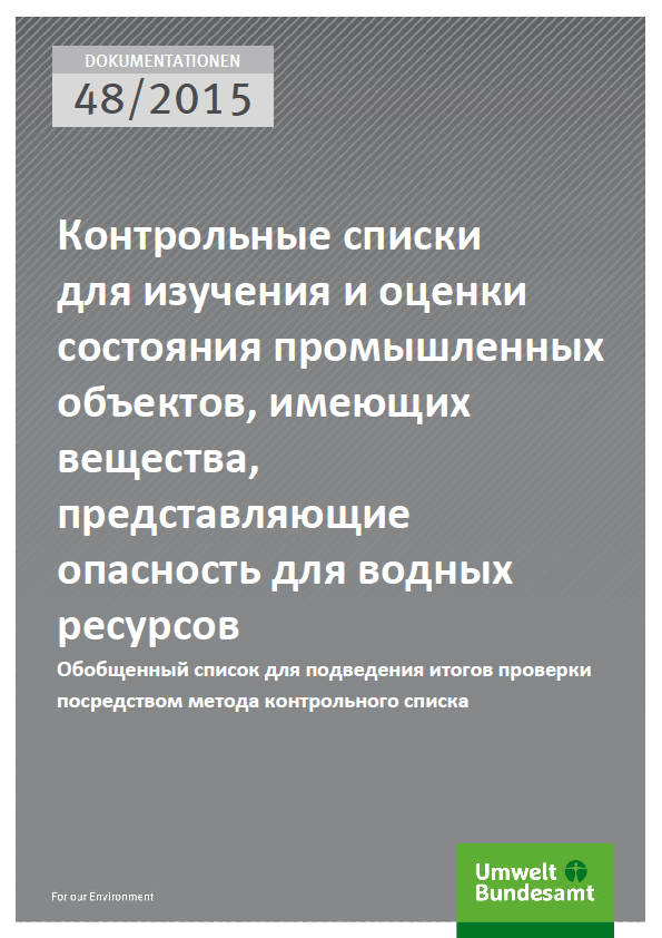 Контрольные списки для изучения и оценки состояния промышленных объектов, имеющих вещества, представляющие опасность для водных ресурсов