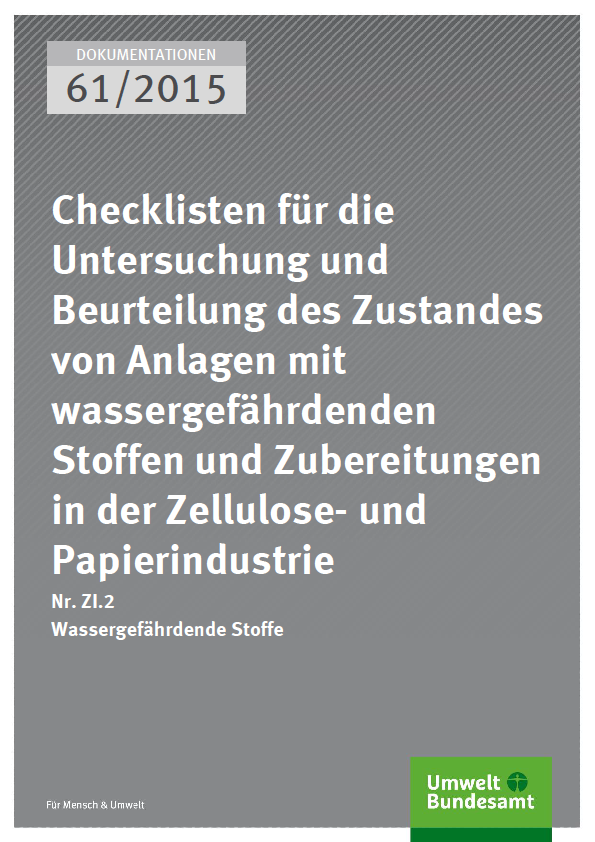 Checklisten für die Untersuchung und Beurteilung des Zustandes von Anlagen mit wassergefährdenden Stoffen und Zubereitungen in der Zellulose- und Papierindustrie