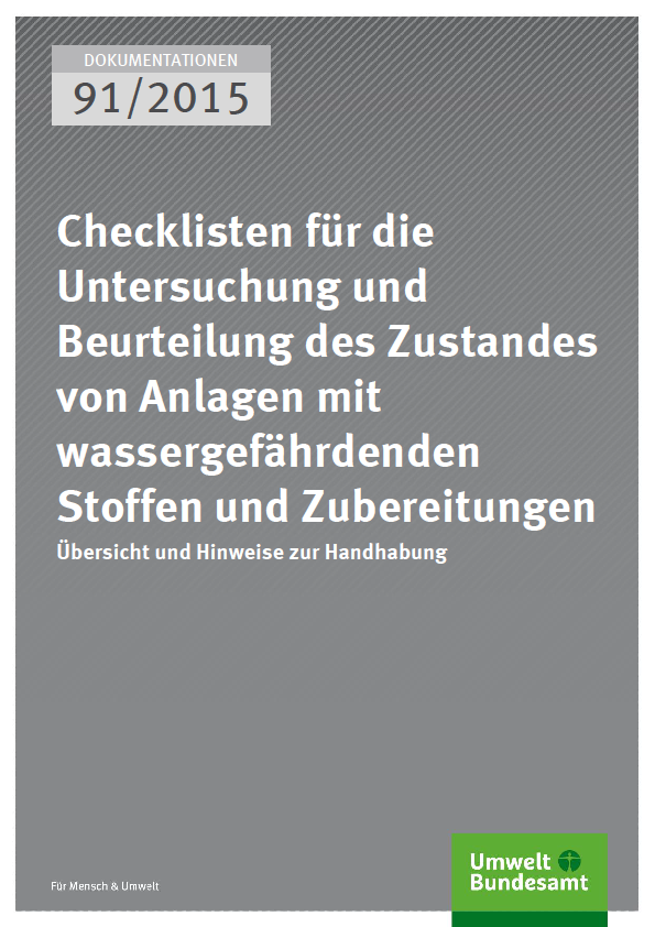 Cover Dokumentationen 91/2015 Checklisten für die Untersuchung und Beurteilung des Zustandes von Anlagen mit wassergefährdenden Stoffen und Zubereitungen