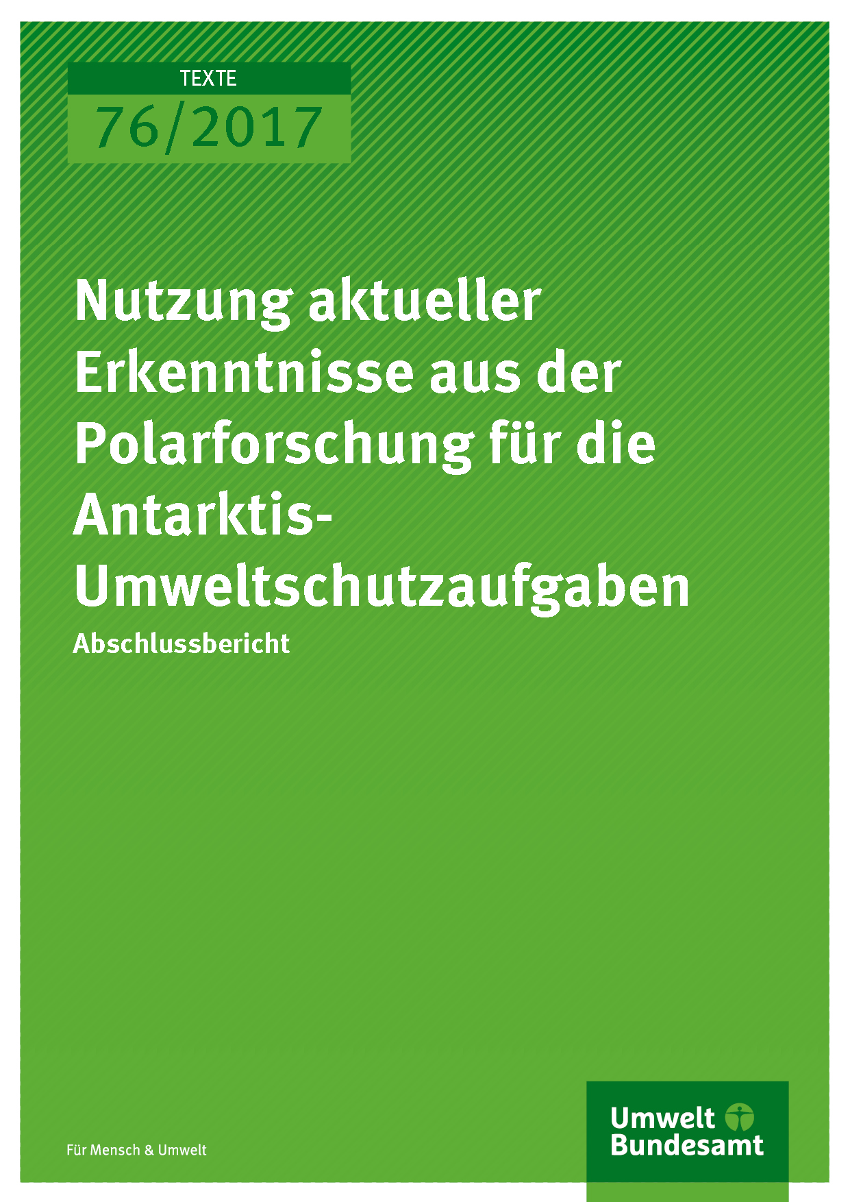 Cover der Publikation 76/2017 Nutzung aktueller Erkenntnisse aus der Polarforschung für die Antarktis-Umweltschutzaufgaben