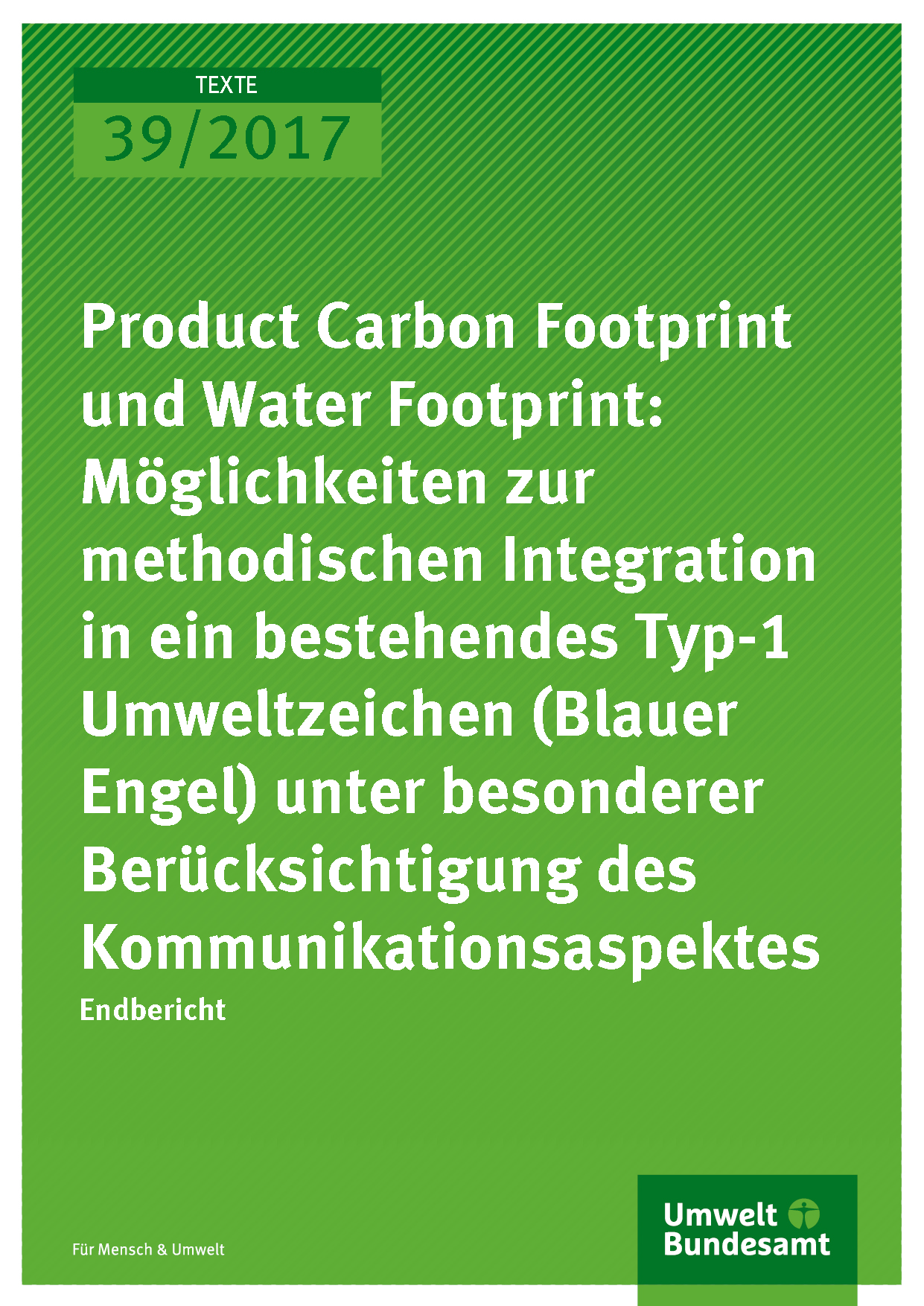 Product Carbon Footprint und Water Footprint: Möglichkeiten zur methodischen Integration in ein bestehendes Typ-1 Umweltzeichen (Blauer Engel) unter besonderer Berücksichtigung des Kommunikationsaspektes