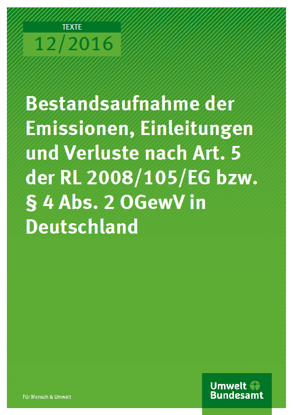 Bestandsaufnahme der Emissionen, Einleitungen und Verluste nach Art. 5 der RL 2008/105/EG bzw. § 4 Abs. 2 OGewV in Deutschland