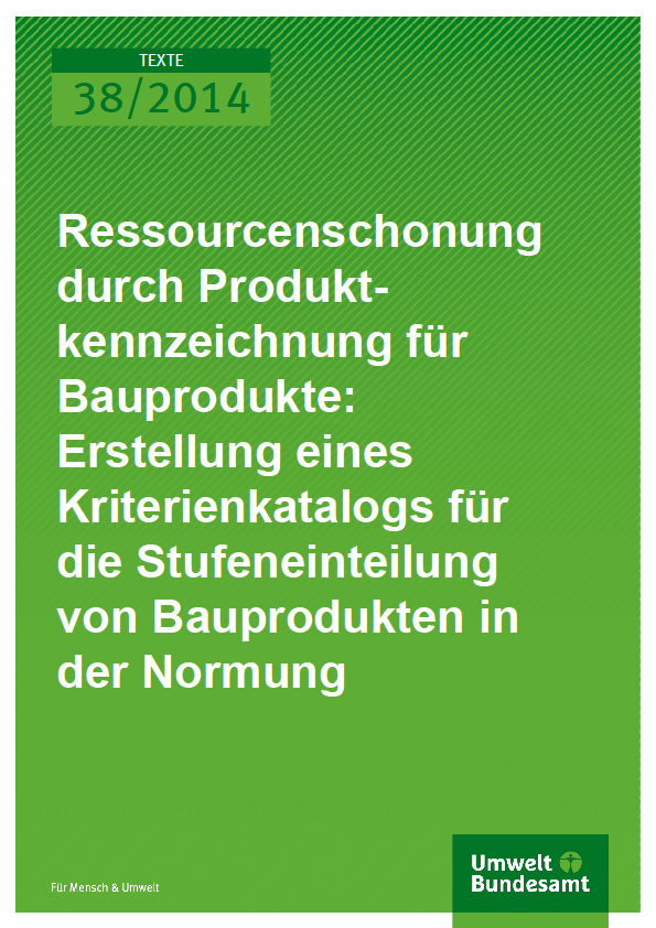 Ressourcenschonung durch Produktkennzeichnung für Bauprodukte: Erstellung eines Kriterienkatalogs für die Stufeneinteilung von Bauprodukten in der Normung
