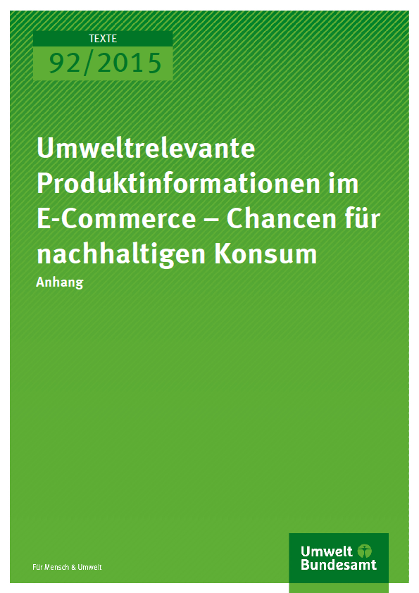 Cover Texte 92/2015 Umweltrelevante Produktinformationen im E-Commerce – Chancen für nachhaltigen Konsum Anhang