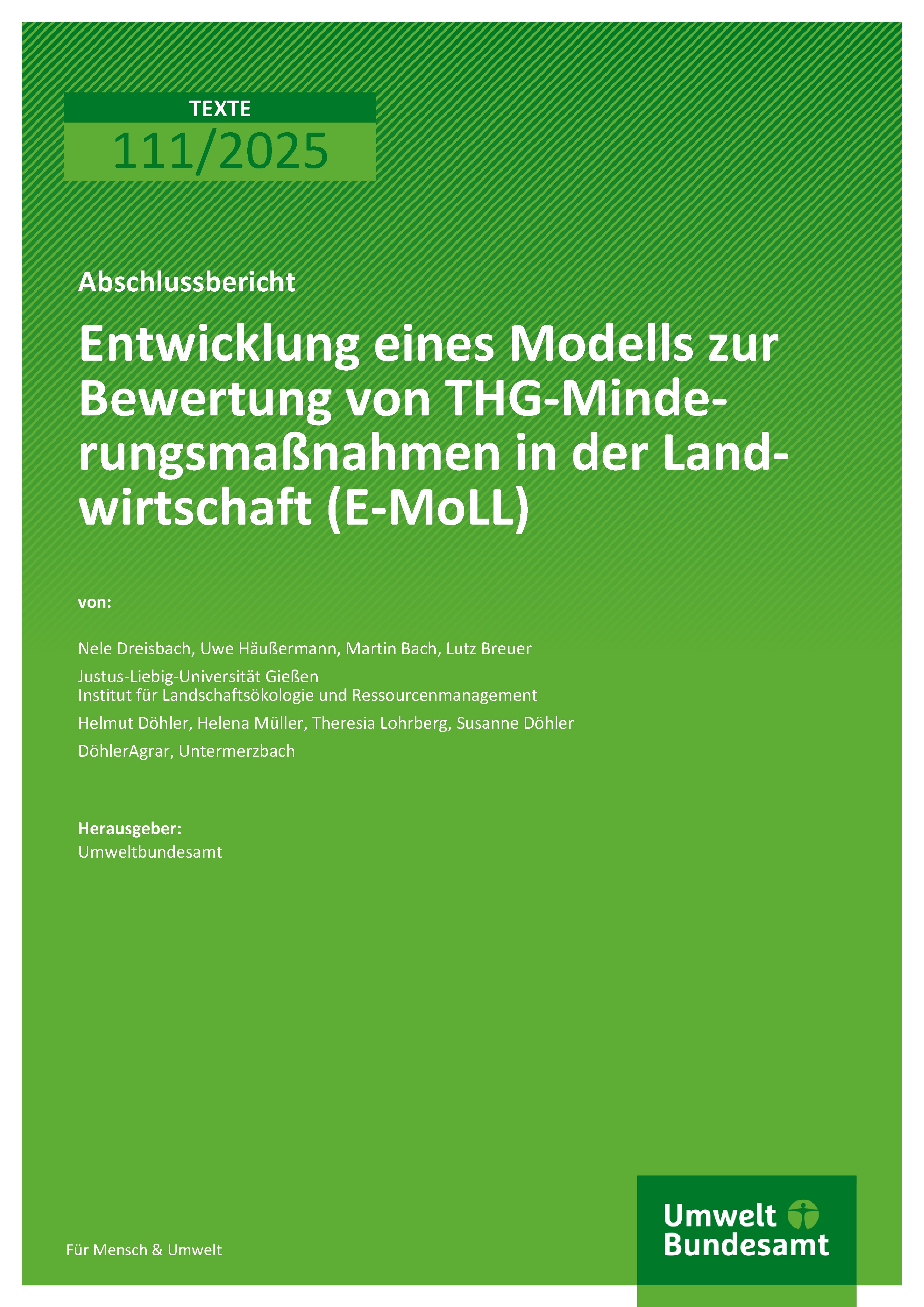 Entwicklung eines Modells zur Bewertung von THG-Minderungsmaßnahmen in der Landwirtschaft (E-MoLL)