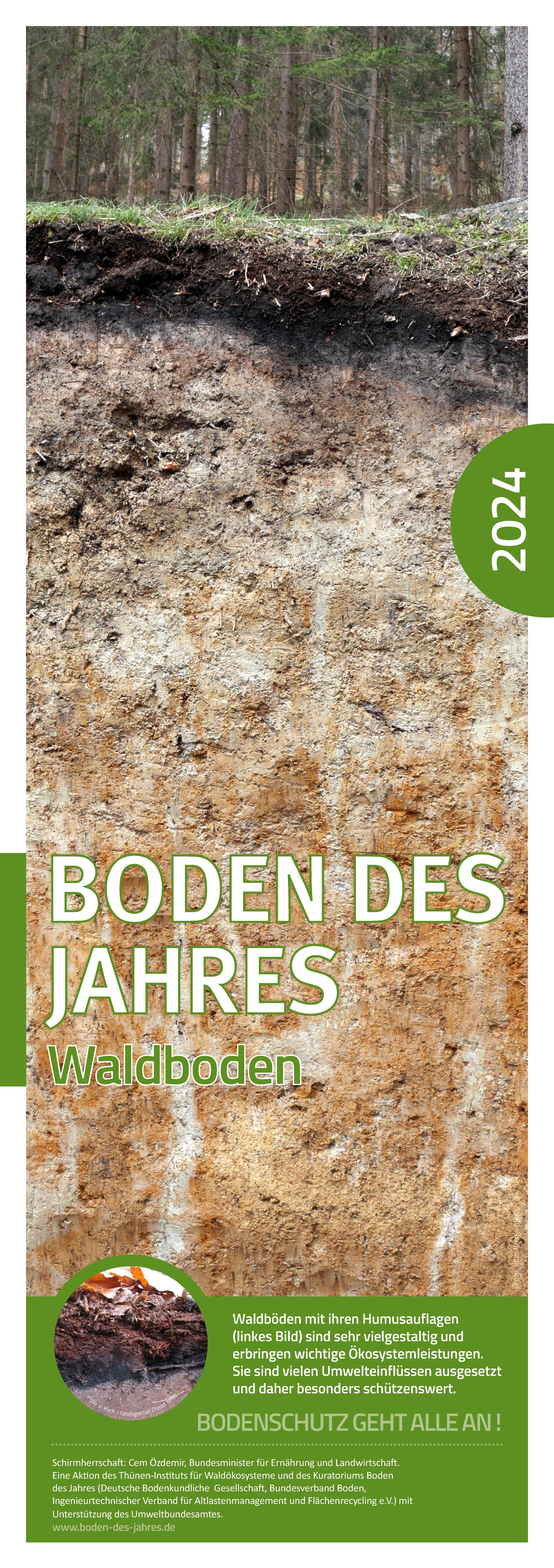Wald, darunter Waldbodenprofil