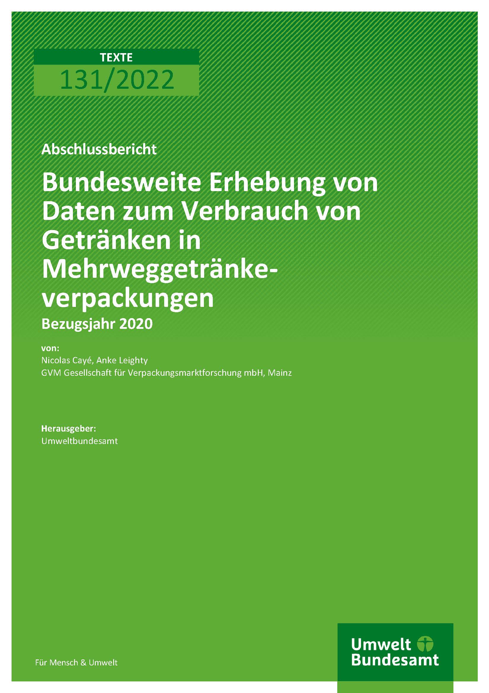 Bundesweite Erhebung von Daten zum Verbrauch von Getränken in Mehrweggetränkeverpackungen - Bezugsjahr 2020