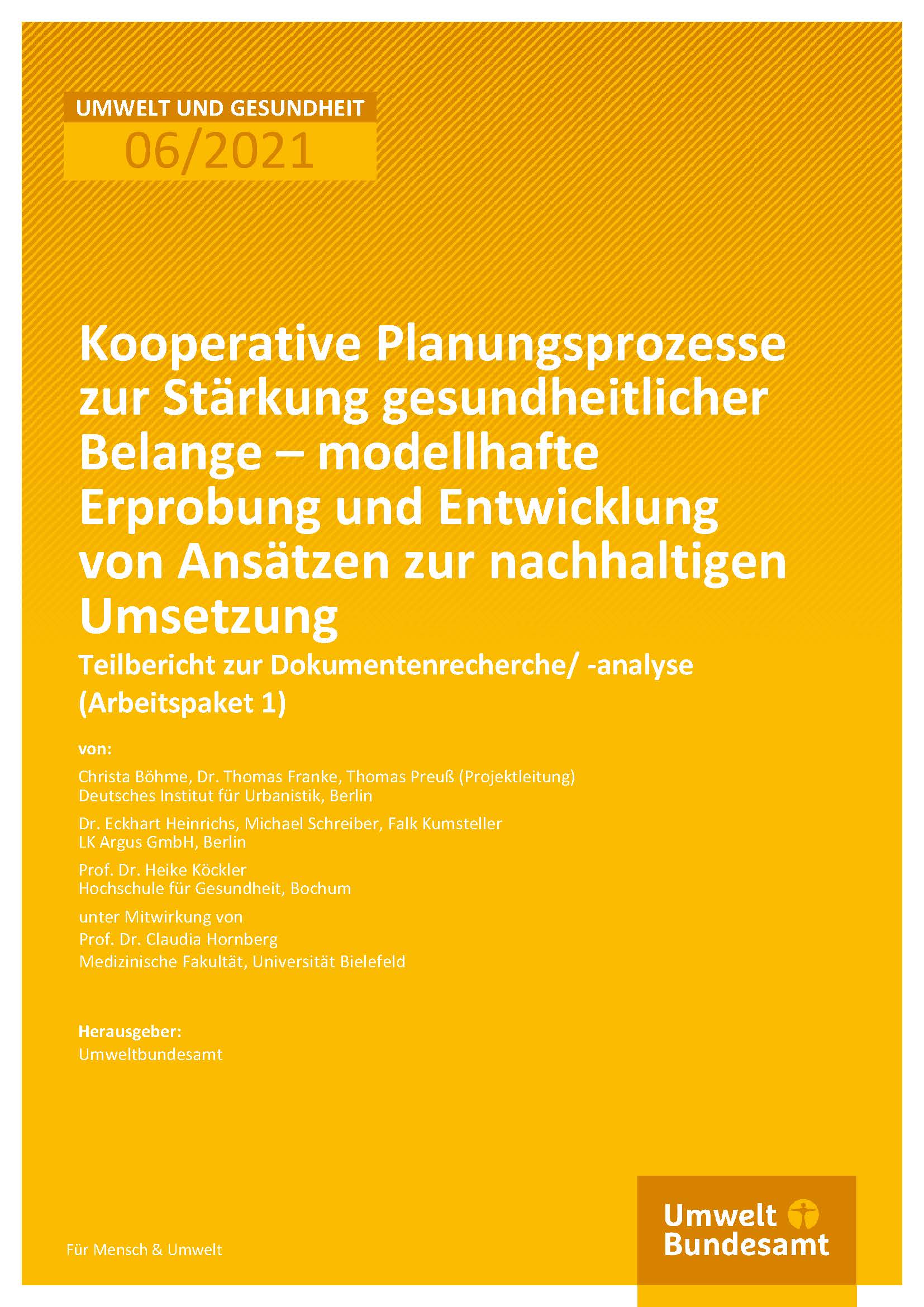 Kooperative Planungsprozesse zur Stärkung gesundheitlicher Belange – modellhafte Erprobung und Entwicklung von Ansätzen zur nachhaltigen Umsetzung