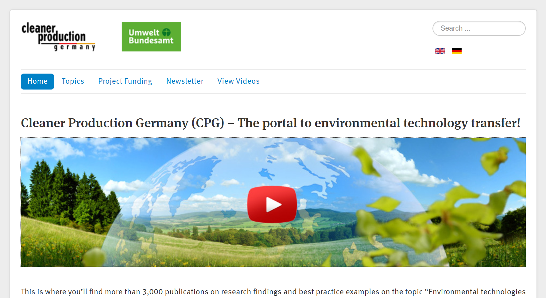 Startseite der Website "Cleaner Production Germany" Quelle: Umweltbundesamt Bild herunterladen (1,75 MB)