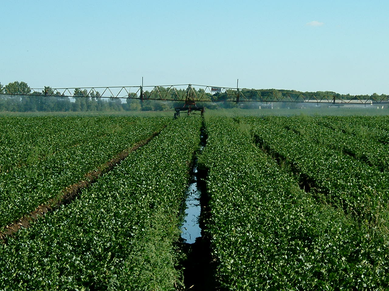 Ein Feld wird künstlich bewässert