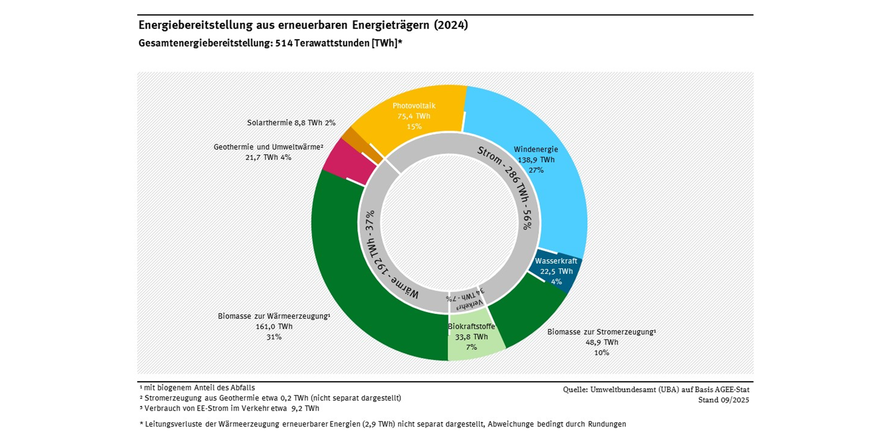 Energiebereitstellung aus erneuerbaren Energieträgern 2024