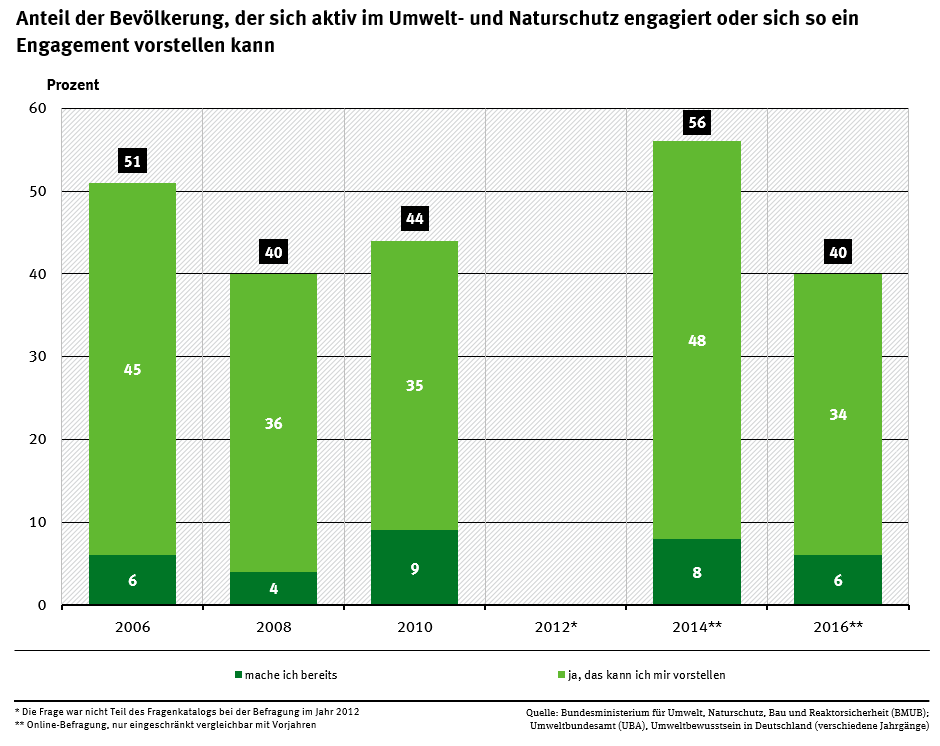 Säulendiagramm, dass die Bereitschaft der Bevölkerung zum Engagement im Umwelt- und Naturschutz darstellt