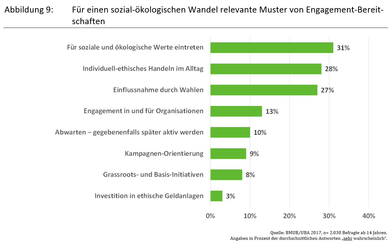 Prozentanzahl der für einen sozial-ökologischen Wandel relevanten Muster von Engagement-Bereitschaften