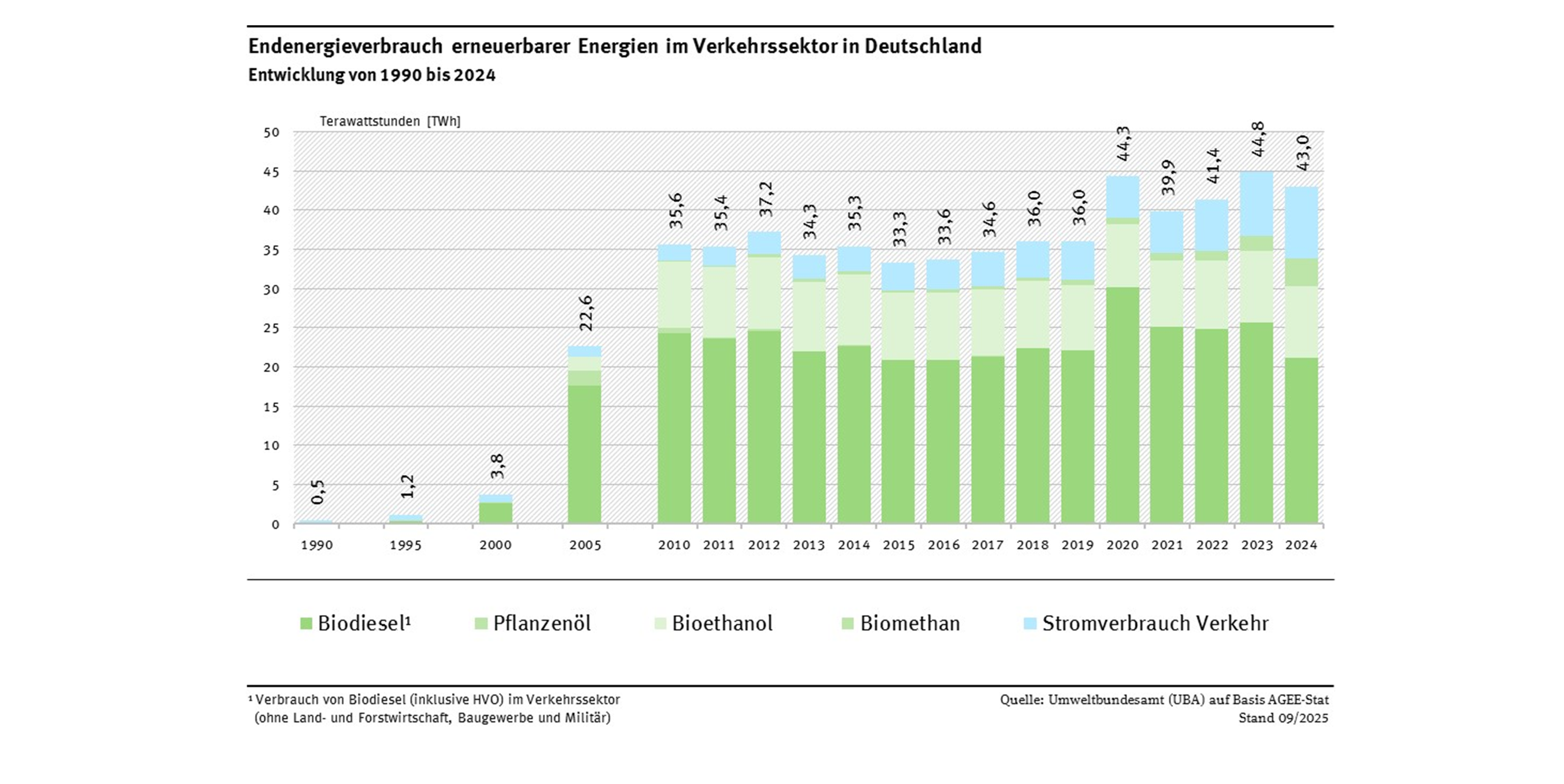 Entwicklung des Verbrauchs an erneuerbaren Energien im Verkehrssektor