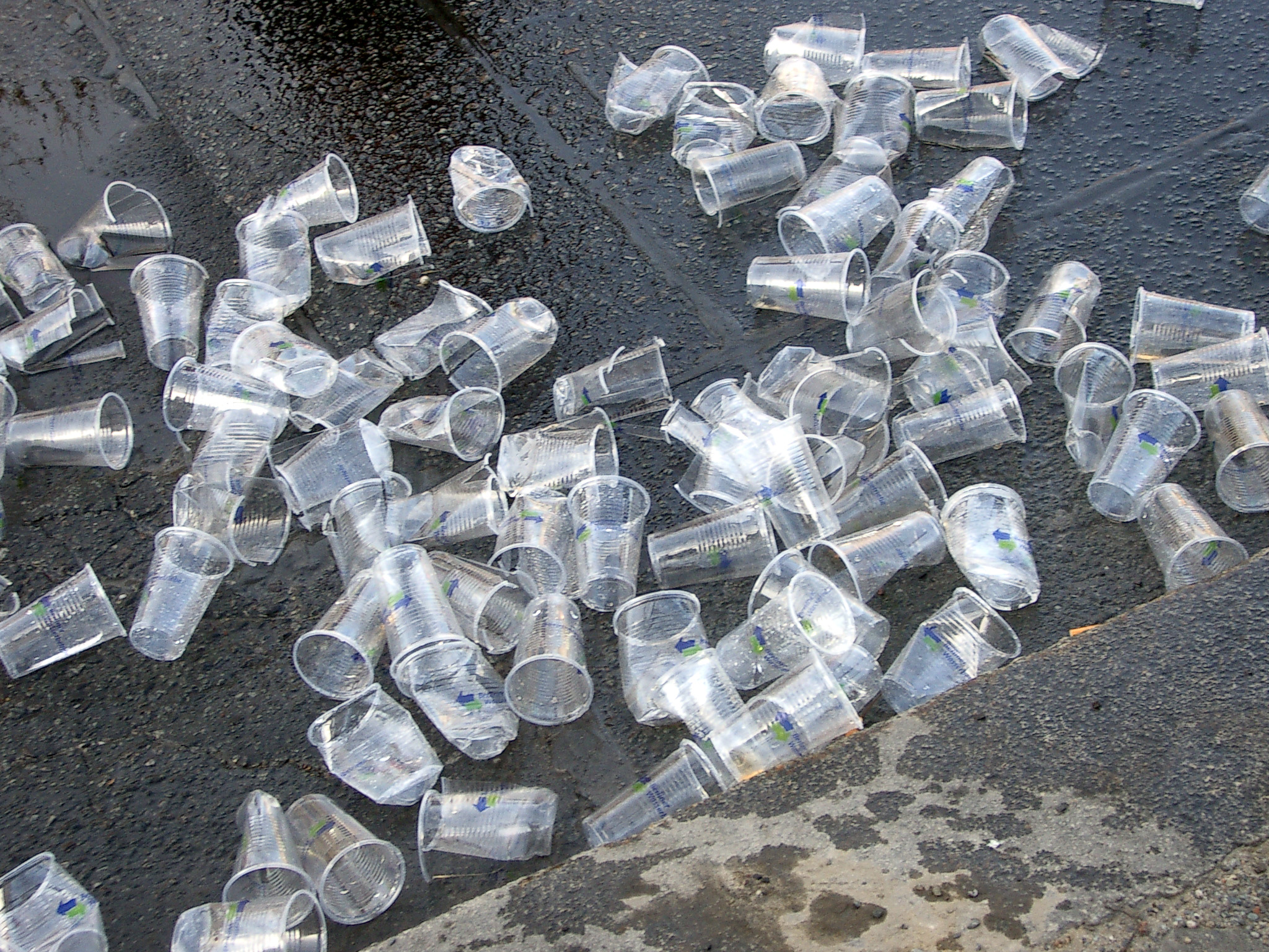 Gebrauchte Plastikbecher liegen auf der Straße