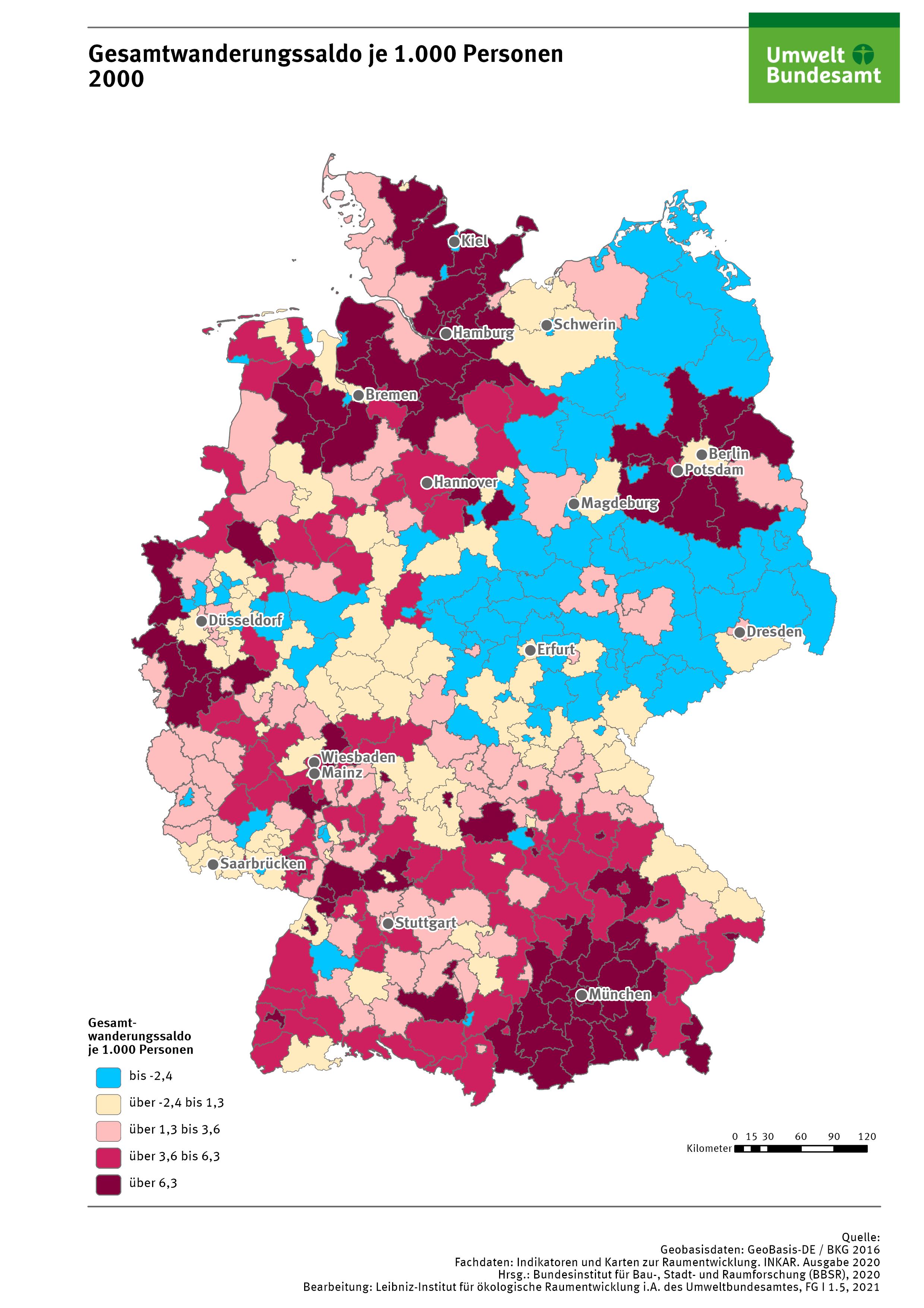 Gesamtwanderungssaldo 2000 je 1.000 Personen