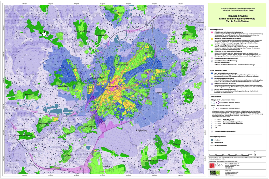 Klimafunktionskarte und Planhinweiskarte der Stadt Gießen