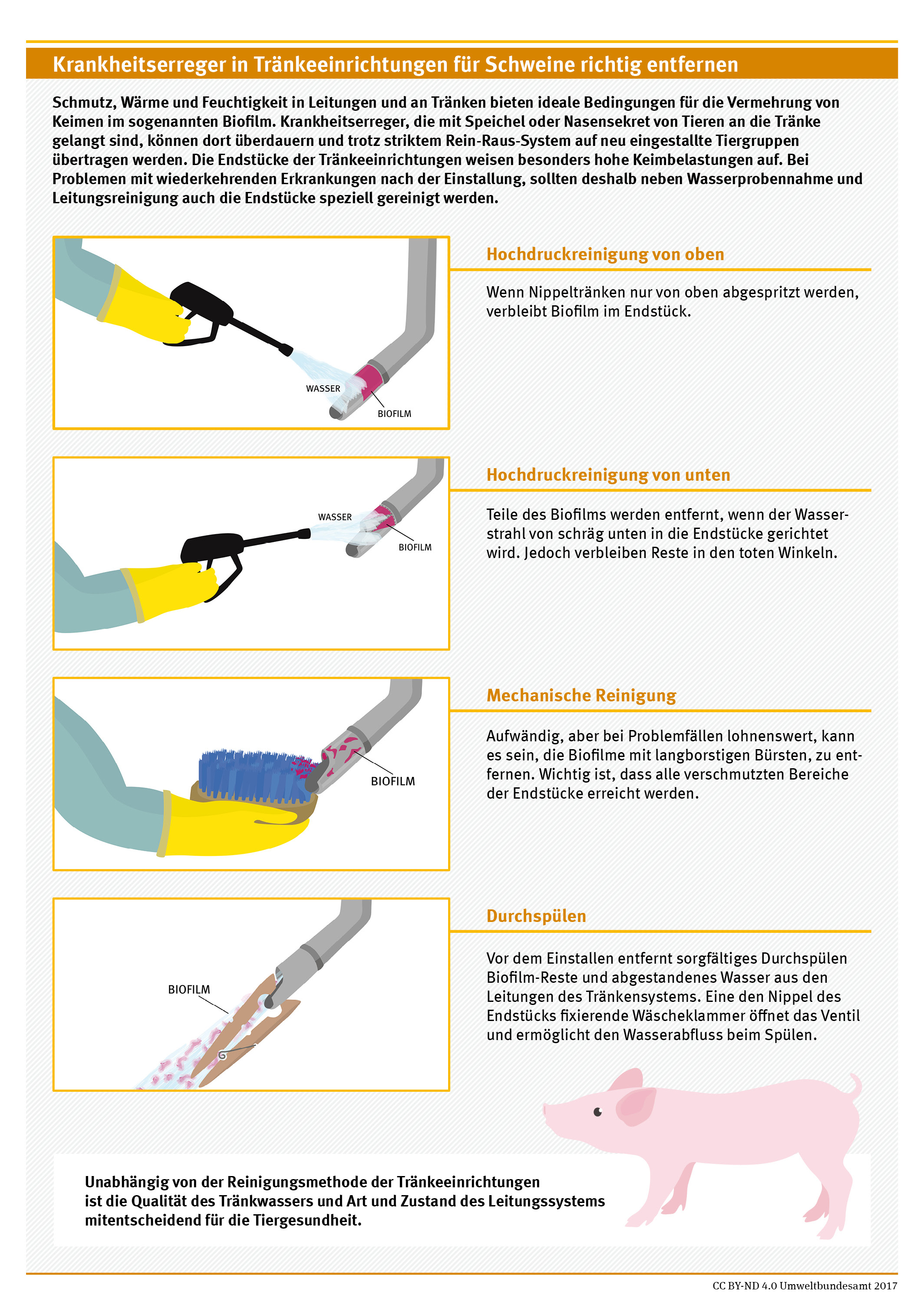 Die Endstücke von Tränkeeinrichtungen weisen besonders hohe Keimbelastungen auf. Die spezielle Reinigung der Endstücke ist empfehlenswert Quelle: CC BY-ND 4.0 Umweltbundesamt 2017