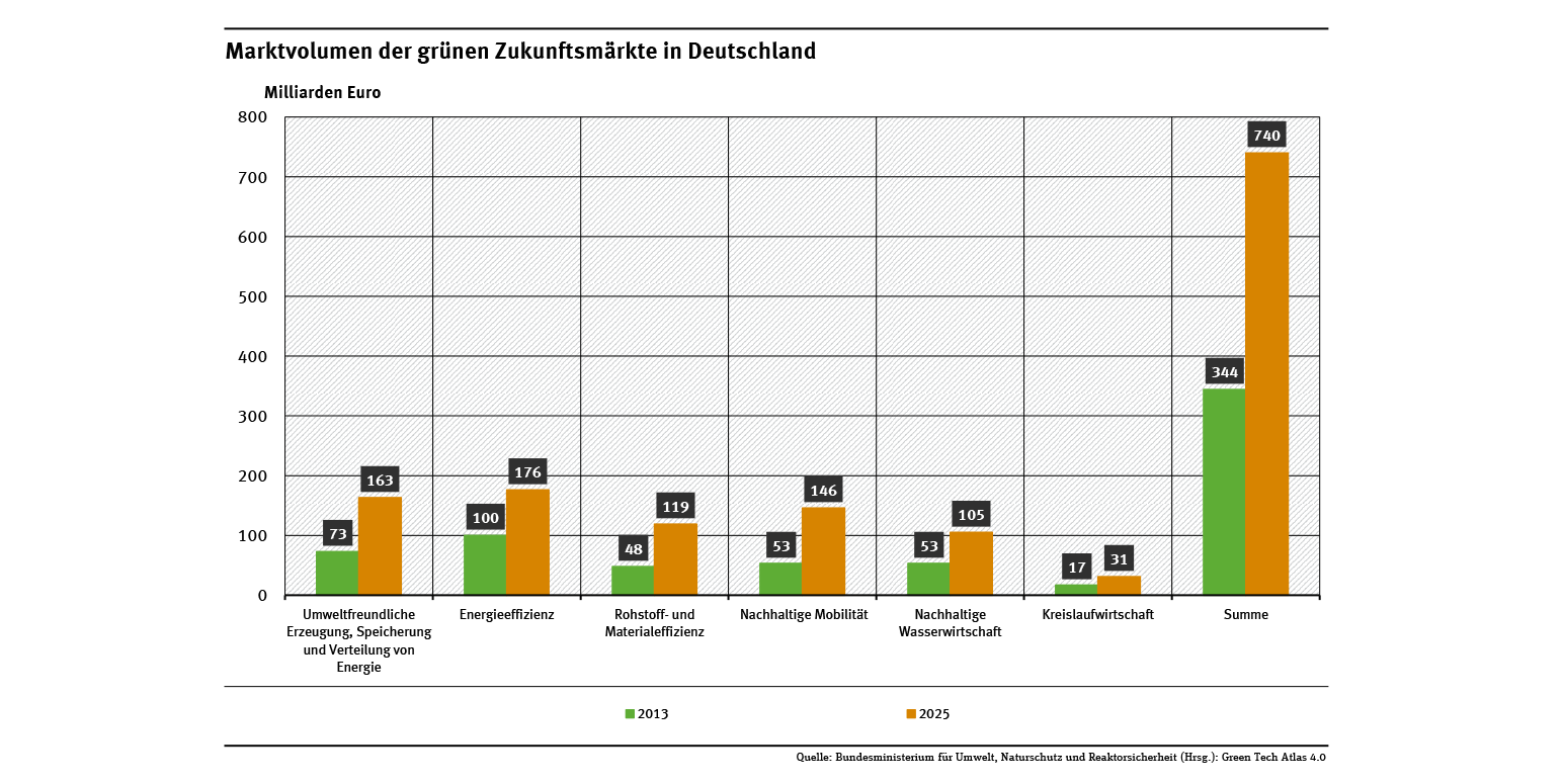 Marktvolumen der grünen Zukunftsmärkte in Deutschland