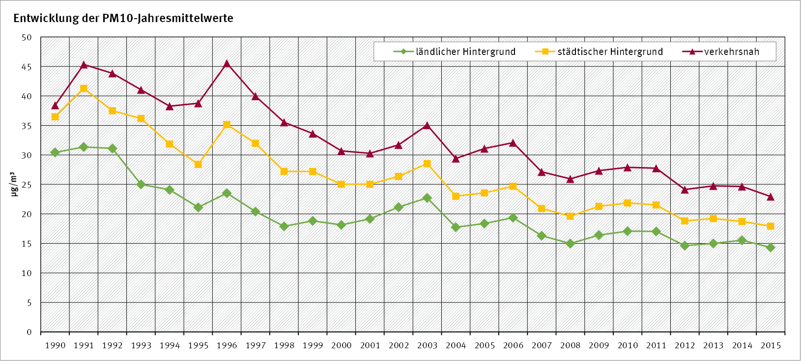 PM10-Werte - Entwicklung 1990 bis 2015