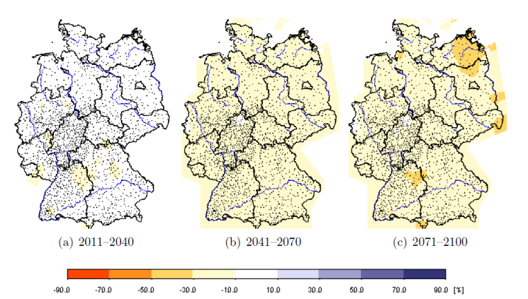 prozentuale Änderung der Niederschlagsmenge im Sommer im Vergleich zum Zeitraum 1961-1990