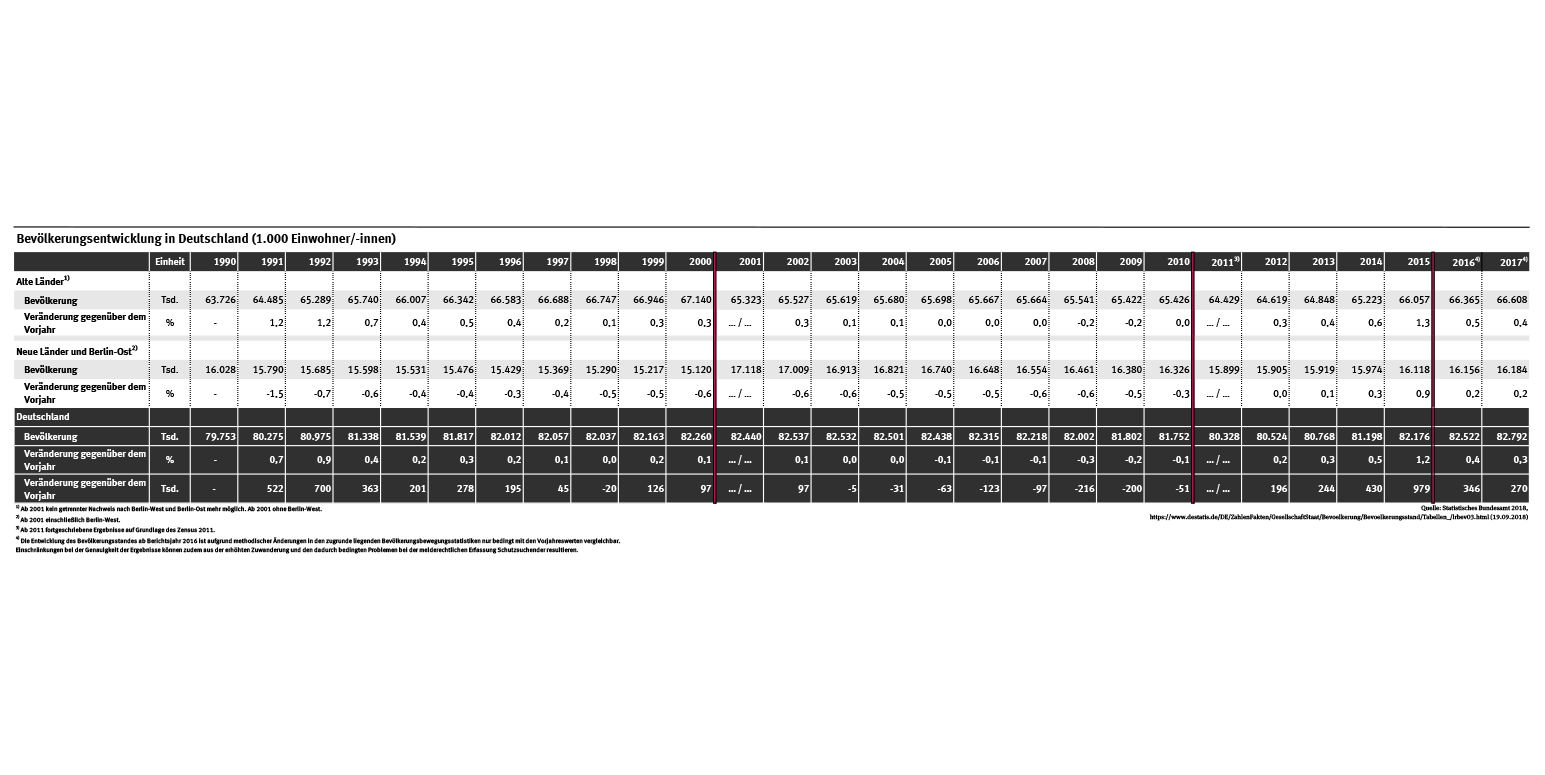 Tab: Bevölkerungsentwicklung in Deutschland