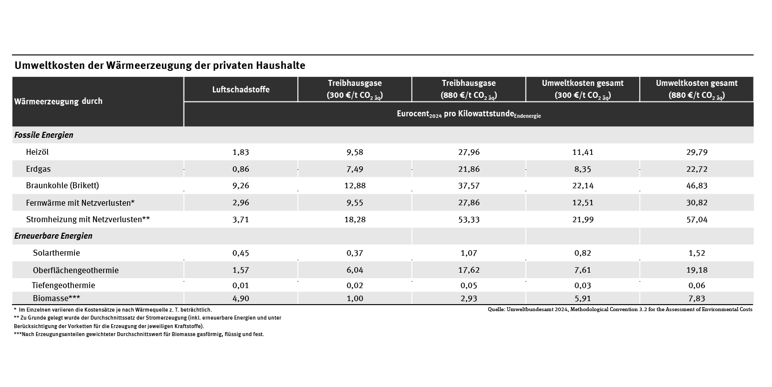 Tab: Umweltkosten der Wärmeerzeugung der privaten Haushalte