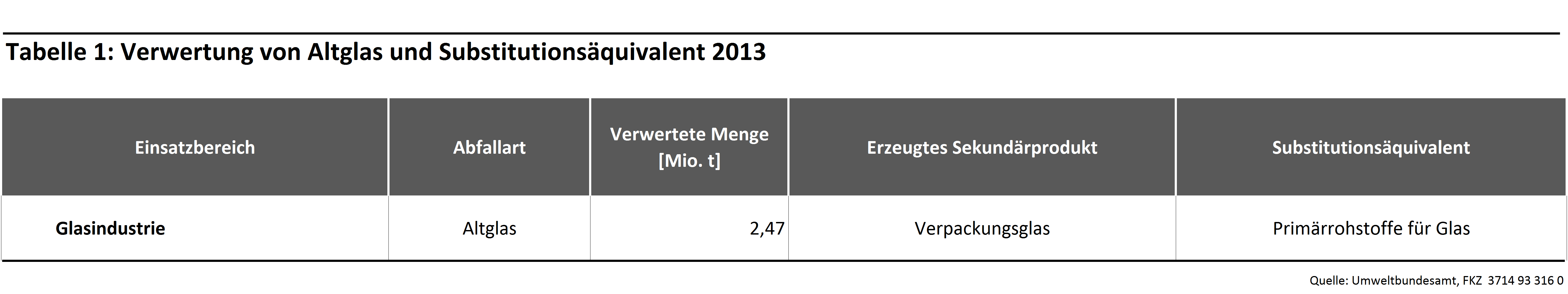 Tabelle 1: Verwertung von Altglas und Substitutionsäquivalent 2013