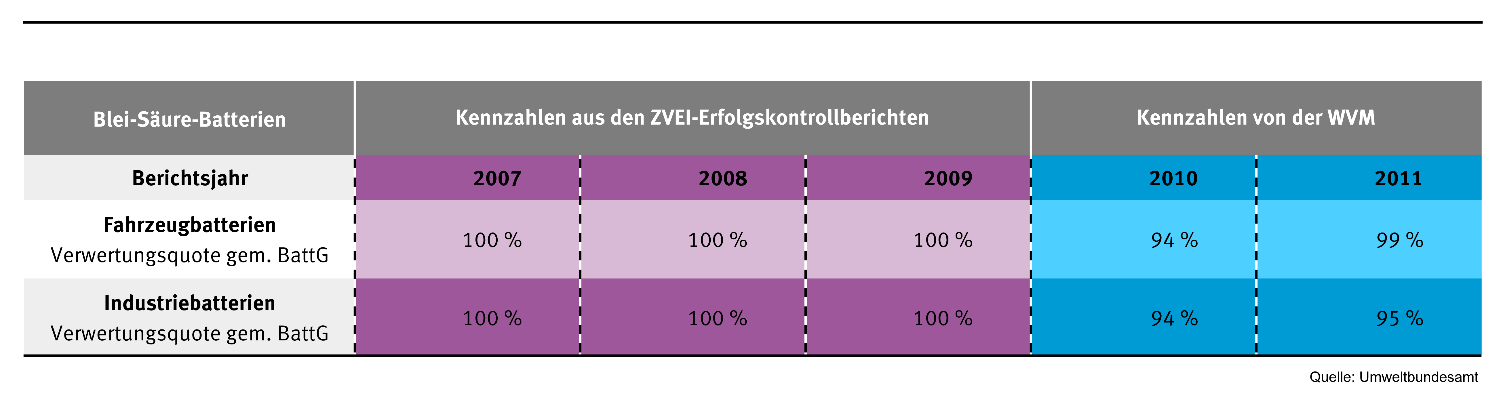 Tabelle 2: Batterie-Verwertungsquoten