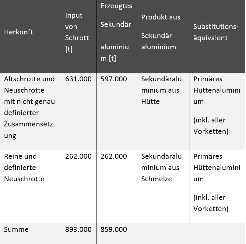 Tabelle: Sekundäraluminiumerzeugung und Substitutionsäquivalente 2013