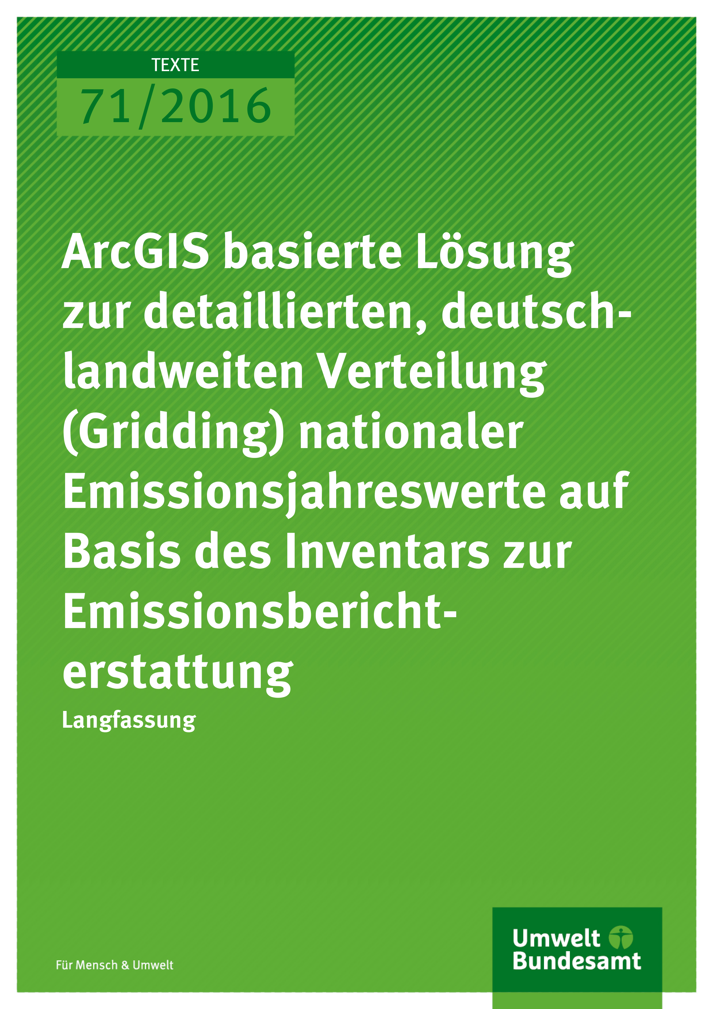 ArcGIS basierte Lösung zur detaillierten, deutschlandweiten Verteilung (Gridding) nationaler Emissionsjahreswerte auf Basis des Inventars zur Emissionsberichterstattung