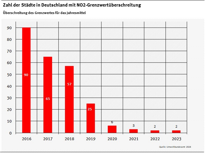 Zahl der Städte in Deutschland mit NO2-Grenzwertüberschreitung