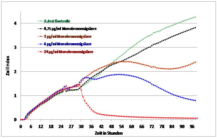 Zellindex in Abhängigkeit von Substanzkonzentration und Zeit
