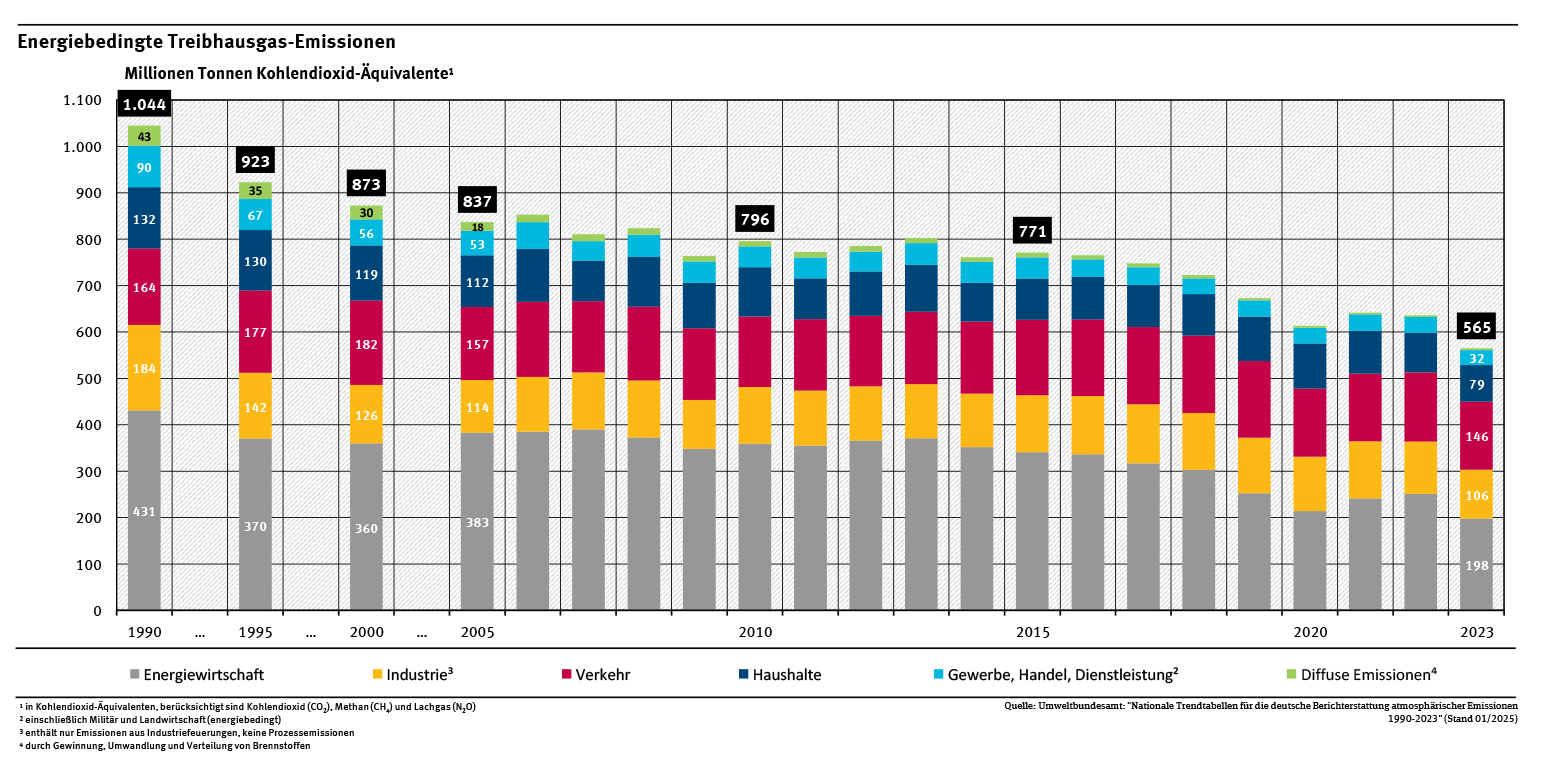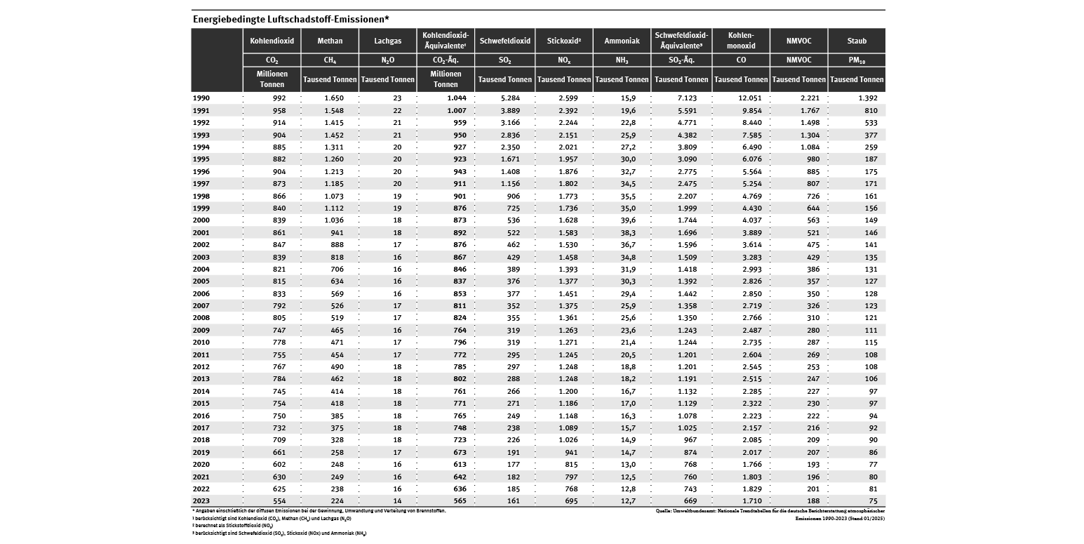 Überall, wo fossile Energieträger wie Kohle, Erdgas oder Mineralöl in elektrische oder thermische Energie (Strom- und Wärmeproduktion) umgewandelt werden, werden sogenannte „energiebedingte Emissionen“ freigesetzt. Bei diesen handelt es sich sowohl um Treibhausgase – hauptsächlich Kohlendioxid (CO2) – als auch um sogenannte klassische Luftschadstoffe. Das Verbrennen von fester, flüssiger oder gasförmiger Biomasse wird gemäß internationalen Bilanzierungsvorgaben als CO2-neutral bewertet. Andere dabei freigesetzte klassische Luftschadstoffe, wie zum Beispiel Stickoxide, werden jedoch bilanziert. Im Verkehrsbereich entstehen energiebedingte Emissionen durch Abgase aus Verbrennungsmotoren. Darüber hinaus entstehen energiebedingt auch sogenannte diffuse Emissionen, zum Beispiel durch die Freisetzung von Grubengas aus stillgelegten Bergwerken.