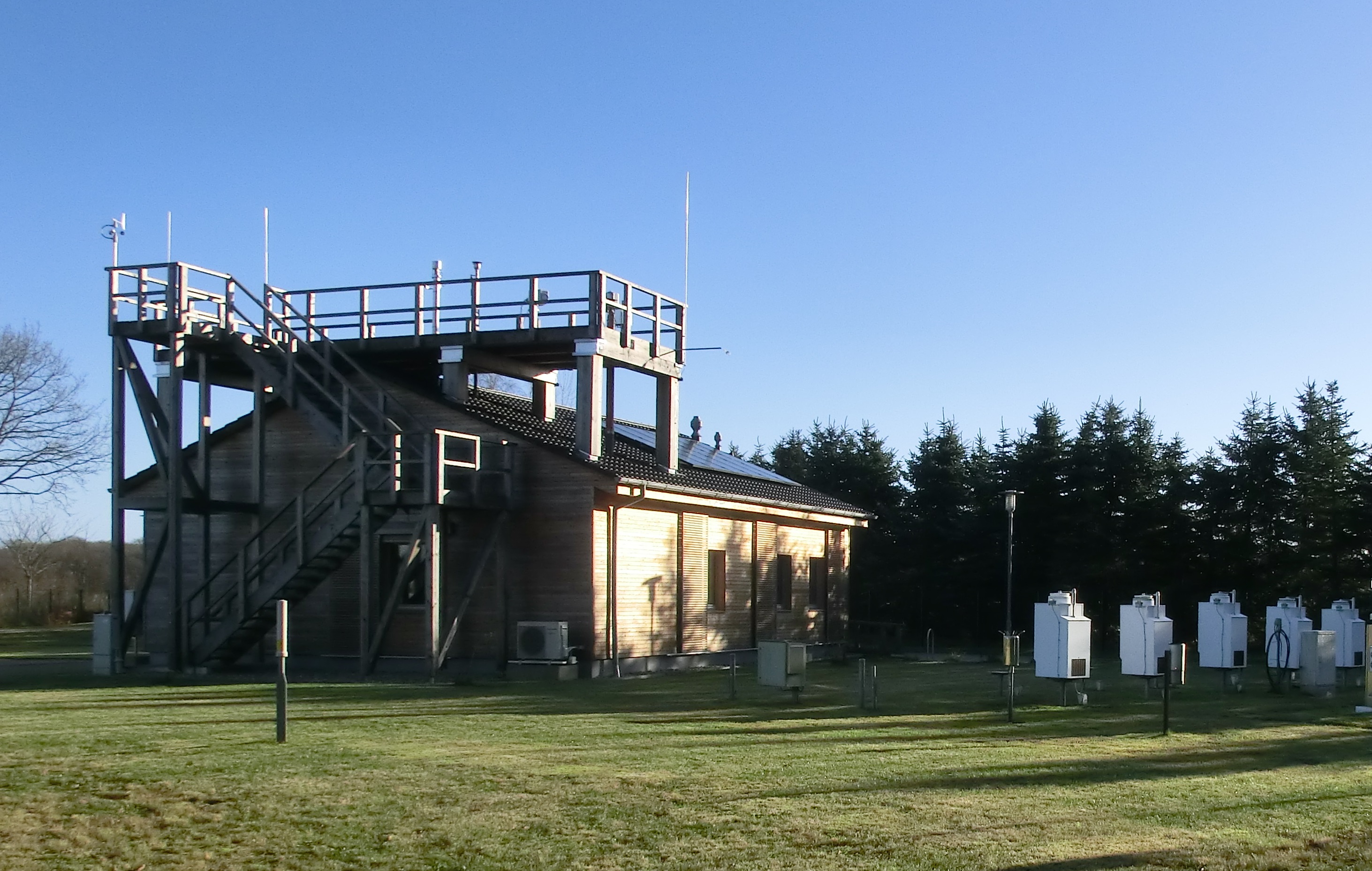 Auf dem Foto sieht man links die UBA-Luftmessstation Zingst und rechts Probenahme-Einrichtungen für die Bestimmung der nassen Deposition von Schwermetallen (Depositionssammler). Messung der Schwermetalldeposition an der UBA-Luftmessstation Zingst
