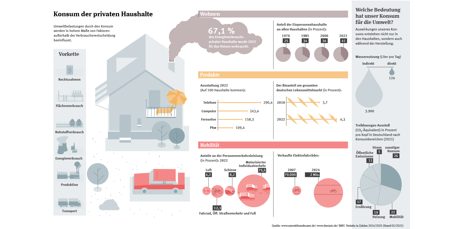 Infografik: Konsum der privaten Haushalte Quelle: Umweltbundesamt / Statistisches Bundesamt / BMDVInfografik als PDF